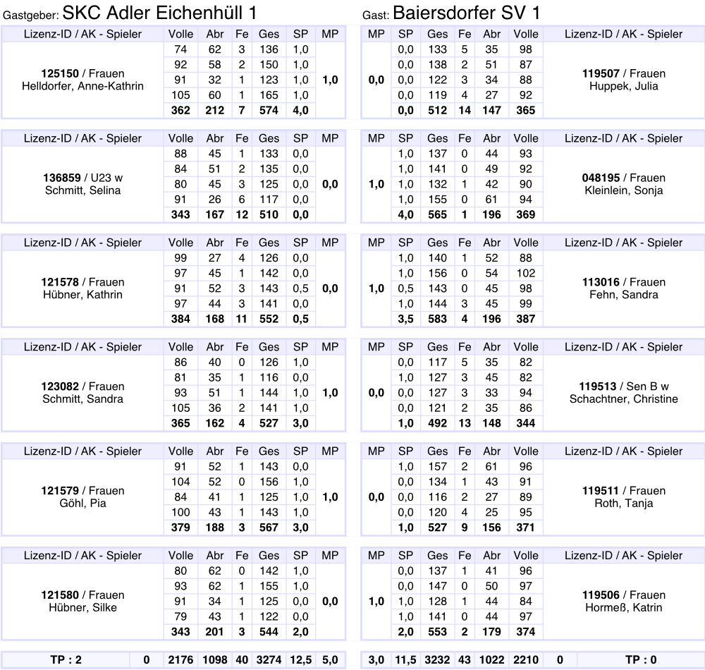 Gesamtergebnis auf 3001 Kegel berichtigt.