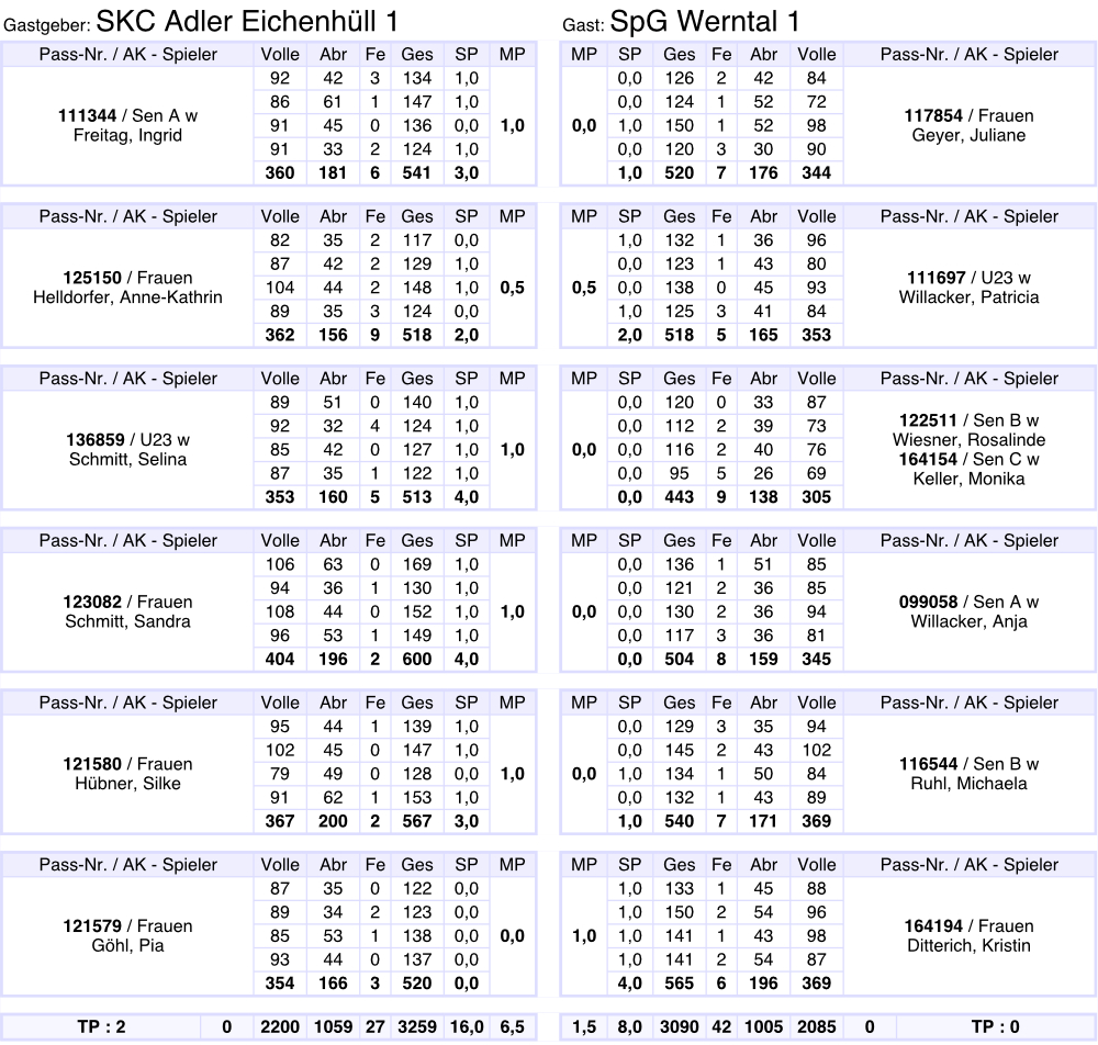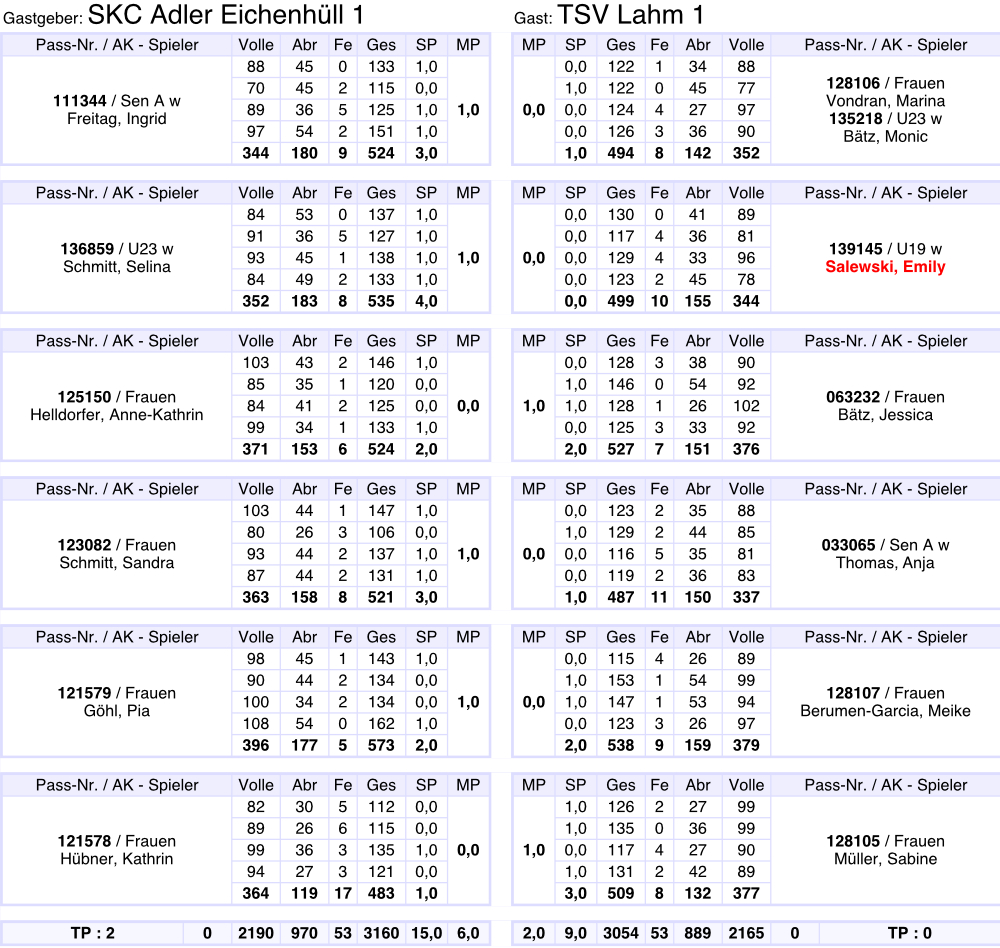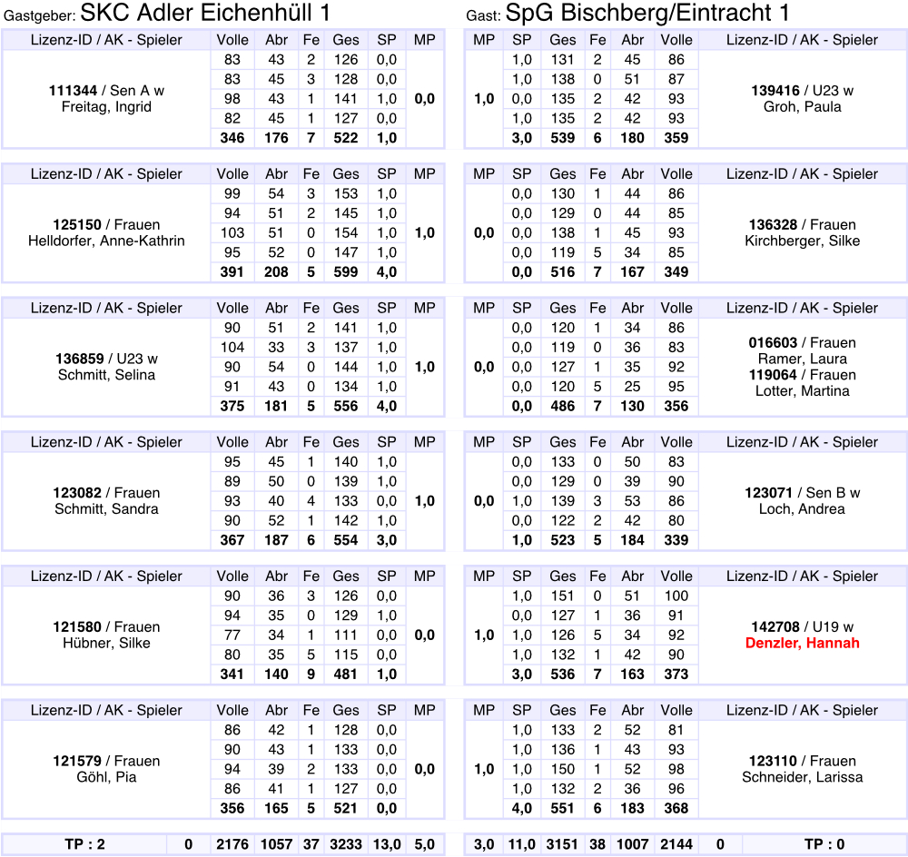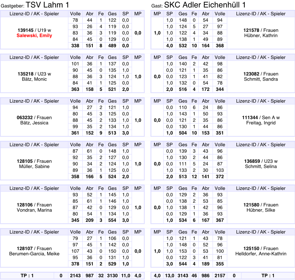 Gesamtergebnis auf 3001 Kegel berichtigt.