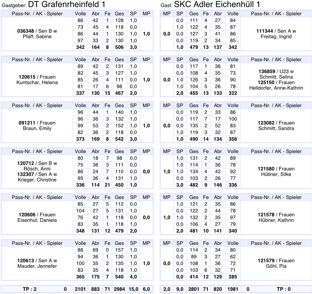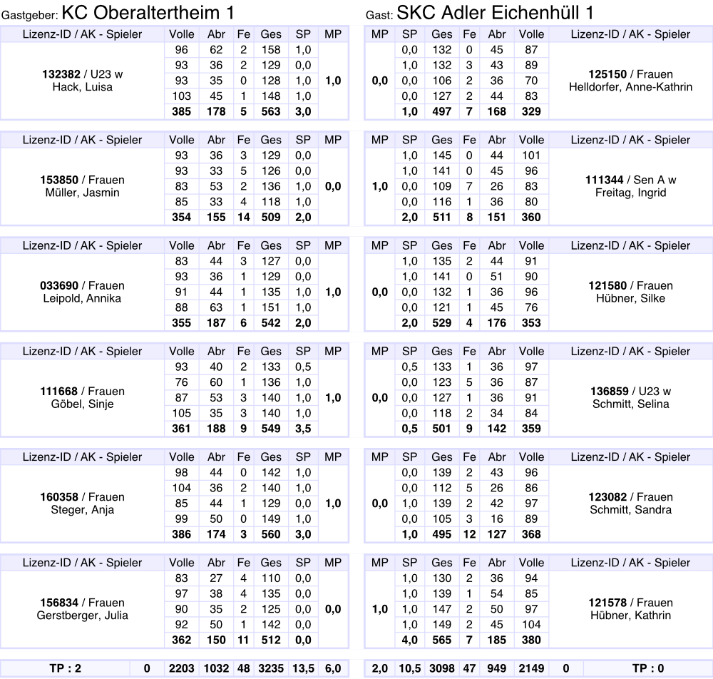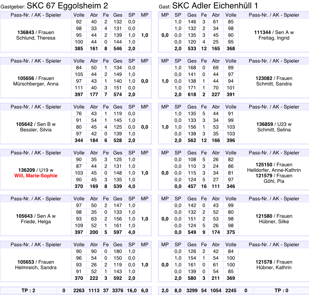 Gesamtergebnis auf 3001 Kegel berichtigt.
