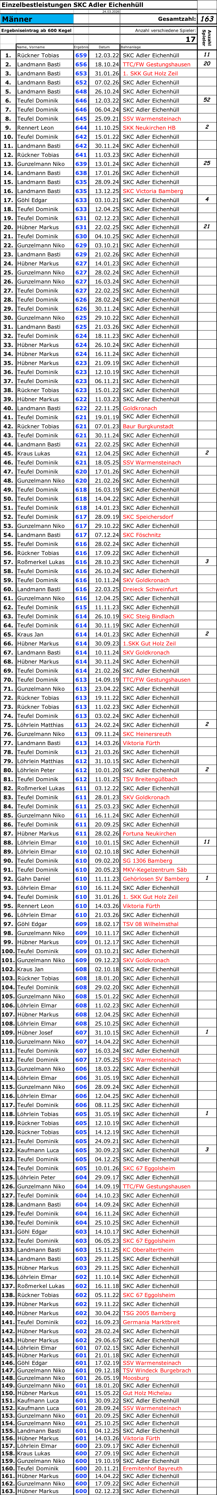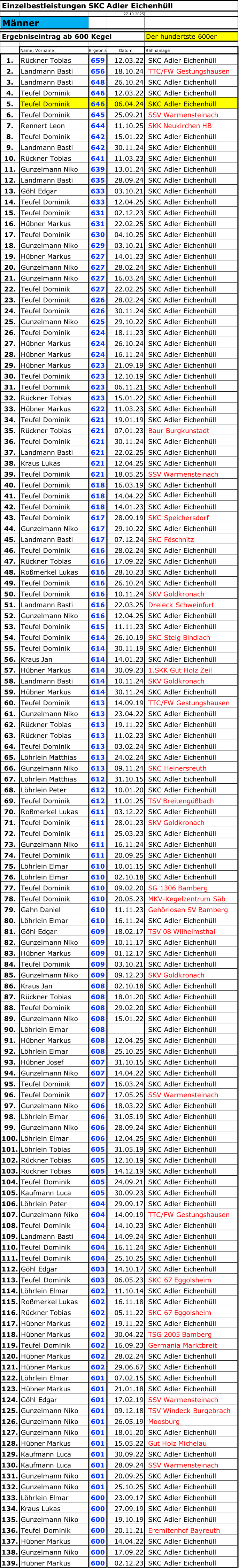 Mannschaftsrekord - 1. Männer - 100 Wurf: