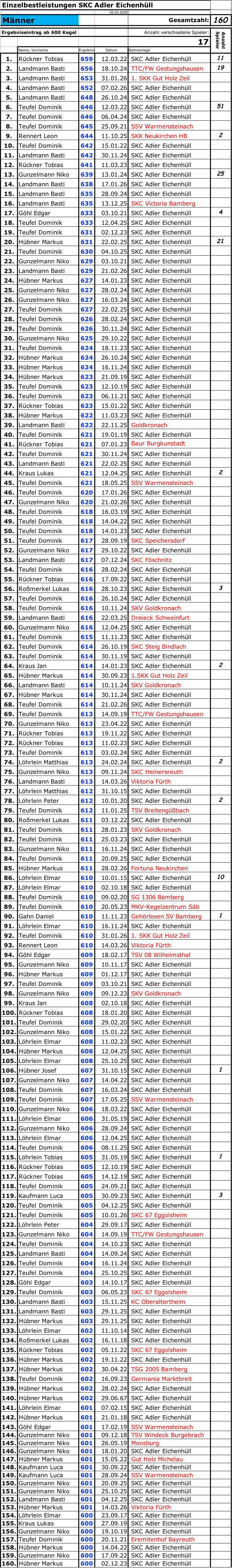 Clubrekorde (6er Mannschaften)