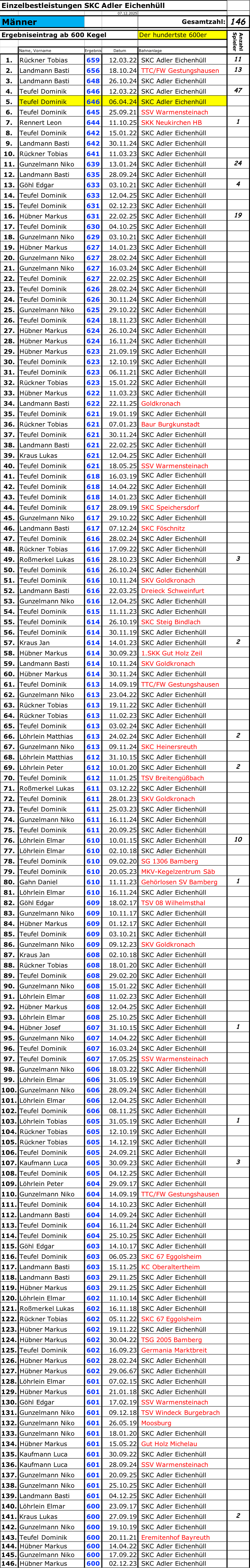Mannschaftsrekord - 1. Männer - 100 Wurf: